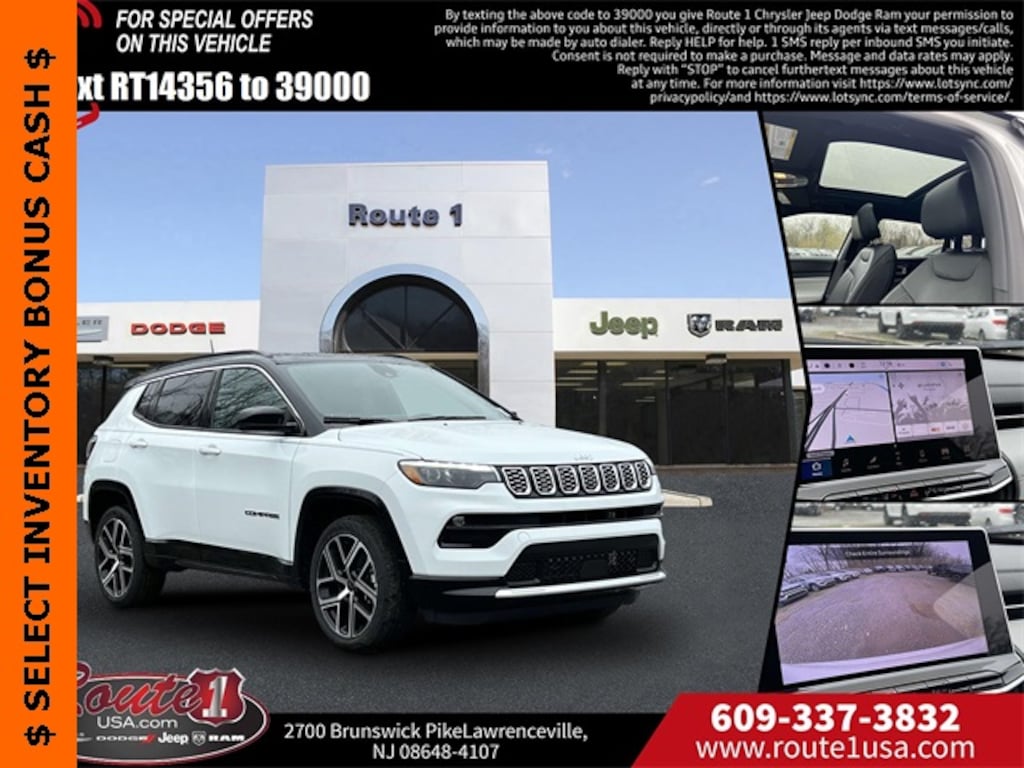 Bright White Clearcoat 2025 Jeep Compass Limited 4D Sport Utility 4WD 2.0L I4 DOHC 8-Speed Automatic