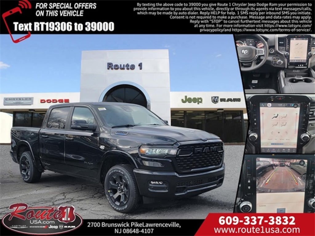115V Auxiliary Power Outlet, 115V Auxiliary Rear Power Outlet, 12" Touchscreen Display, 2nd Row in Floor Storage Bins, 3 Rear Seat Head Restraints, 4 Way Front Headrests, 400W Inverter, 4G LTE Wi-Fi Hot Spot, 9 Amplified Speakers with Subwoofer, Accent Color Door Handles, Accent Color Premium Power Mirrors, Accent Color Tailgate Handle, Air Conditioning ATC with Dual Zone Control, Anti-Spin Differential Rear Axle, Apple CarPlay, Auto Power-Folding Mirrors, Auto-Dimming Exterior Driver Mirror, Auto-Dimming Rear-View Mirror, Big Horn Level 2 Equipment Group, Black Exterior Mirrors, Black Exterior Truck Badging, Black Headlamp Bezels, Black Interior Accents, Black Painted Exterior Mirrors Caps, Black Premium Power Mirrors, Black Tail Lamp Bezels, Body Color Fender Flares, Body Color Front Bumper, Body Color Rear Bumper with Step Pads, Bucket Seats, Center Console Parts Module, Cluster 7.0" TFT Color Display, Configurable Drive Mode, Connected Travel and Traffic Services, Connectivity - US/Canada, Convex Wide-Angle Exterior Mirror Insert, Deluxe Cloth Bucket Seats, Disassociated Touchscreen Display, Dual Exhaust with Black Tips, Exterior Mirrors Courtesy Lamps, Exterior Mirrors with Heating Element, Exterior Mirrors with Supplemental Signals, Front Seat Back Map Pockets, Full Length Floor Console, Global Telematics Box Module, Glove Box Lamp, Google Android Auto, GPS Antenna Input, GPS Navigation, Grille Black Surround Black Mesh, HD Radio, Heated Front Seats, Heated Steering Wheel, Integrated Center Stack Radio, Integrated Voice Command with Bluetooth, Leather Wrapped Steering Wheel, LED Dome Lamp with on/Off Switch, LED Footwell Lighting, Manual Adjust 4-Way Front Passenger Seat, Media Hub with 2 Charge Only USBs, Night Edition, Overhead LED Lamps, Power 2-Way Driver Lumbar Adjust, Power Adjust 8-Way Driver Seat, Power Adjustable Pedals, Premium Overhead Console, Radio: Uconnect 5 Navigation with 12.0" Display, RAM Grille Badge - Black, Rear 60/40 Folding Seat, Rear Center Armrest, Rear Power Sliding Window, Rear Window Defroster, Remote Tailgate Release, Security Alarm, SiriusXM Radio Service, SiriusXM with 360L, Steering Wheel Mounted Audio Controls, Sun Visors with Illuminated Vanity Mirrors, Universal Garage Door Opener, USB Host Flip, Wheels: 20" x 9.0" Aluminum Painted Clad, Wheels: 20" x 9" Aluminum Chrome Clad.