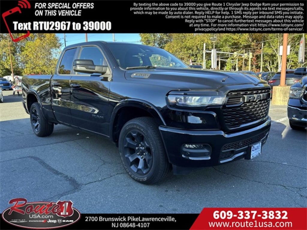115V Auxiliary Power Outlet, 12" Touchscreen Display, 400W Inverter, 4G LTE Wi-Fi Hot Spot, 9 Amplified Speakers w/Subwoofer, Accent Color Door Handles, Accent Color Premium Power Mirrors, Accent Color Tailgate Handle, Air Conditioning ATC w/Dual Zone Control, Anti-Spin Differential Rear Axle, Apple CarPlay, Auto Power-Folding Mirrors, Auto-Dimming Exterior Driver Mirror, Auto-Dimming Rear-View Mirror, Big Horn Level 2 Equipment Group, Big Horn Package 23Z, Black Exterior Mirrors, Black Exterior Truck Badging, Black Headlamp Bezels, Black Interior Accents, Black Painted Exterior Mirrors Caps, Black Premium Power Mirrors, Black RAM Grille Badge, Black Tail Lamp Bezels, Body Color Front Bumper, Body Color Rear Bumper w/Step Pads, Cluster 7" TFT Color Display, Configurable Drive Mode, Connected Travel & Traffic Services, Connectivity - US/Canada, Convex Wide-Angle Exterior Mirror Insert, Deluxe Cloth Bucket Seats, Dual Exhaust w/Black Tips, Exterior Mirrors Courtesy Lamps, Exterior Mirrors w/Heating Element, Exterior Mirrors w/Supplemental Signals, Glove Box Lamp, Google Android Auto, GPS Antenna Input, GPS Navigation, Grille Black Surround Black Mesh, HD Radio, Heated Front Seats, Heated Steering Wheel, Integrated Voice Command w/Bluetooth, Leather Wrapped Steering Wheel, LED Dome Lamp w/On/Off Switch, LED Footwell Lighting, Night Edition, Overhead LED Lamps, Power 2-Way Driver Lumbar Adjust, Power Adjust 8-Way Driver Seat, Power Adjustable Pedals, Premium Overhead Console, Radio: Uconnect 5 Nav w/12" Display, Rear Power Sliding Window, Rear Window Defroster, Remote Tailgate Release, Security Alarm, SiriusXM w/360L, Steering Wheel Mounted Audio Controls, Sun Visors w/Illuminated Vanity Mirrors, Universal Garage Door Opener, USB Host Flip, Wheels: 20" x 9" Aluminum Painted Clad. Diamond Black Crystal Pearlcoat 2025 Ram 1500 Big Horn/Lone Star 4WD 3.6L V6 24V VVT 8-Speed Automatic